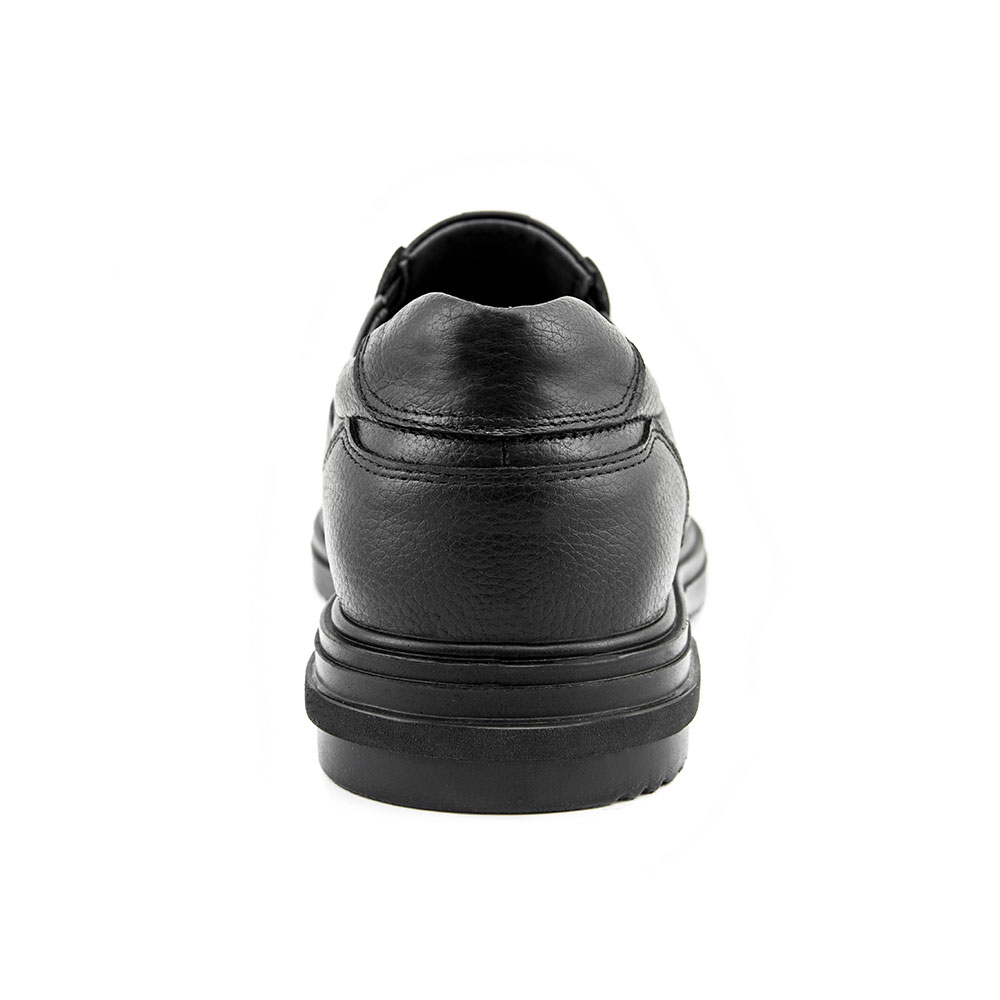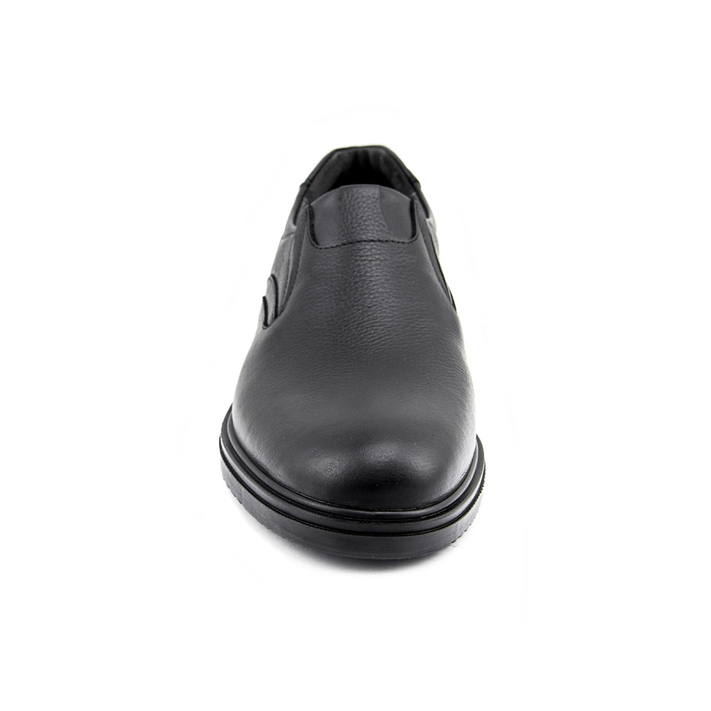 کفش راحتی مردانه آفاق چرم با زیره PU تزریقی | کد 4002 رنگ مشکی، یک کفش سبک و راحت است که برای استفاده روزمره و پیادهروی مناسب میباشد. این کفش از چرم طبیعی ساخته شده و دارای زیره PU تزریقی است که cushioning و استحکام را فراهم میکند.