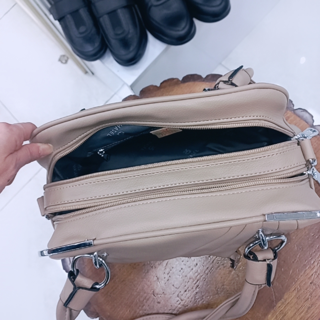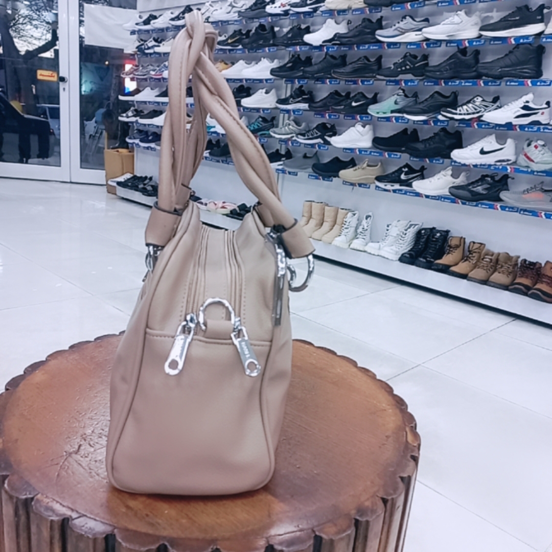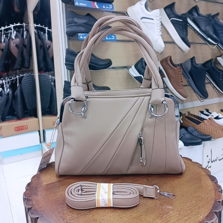 سبک طراحی: کیف زنانه با دسته برای حمل روی دست و همچنین دارای بند دوشی بلند و قابل تنظیم است.