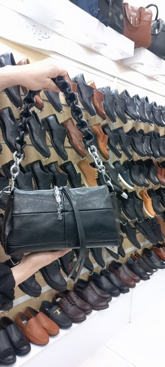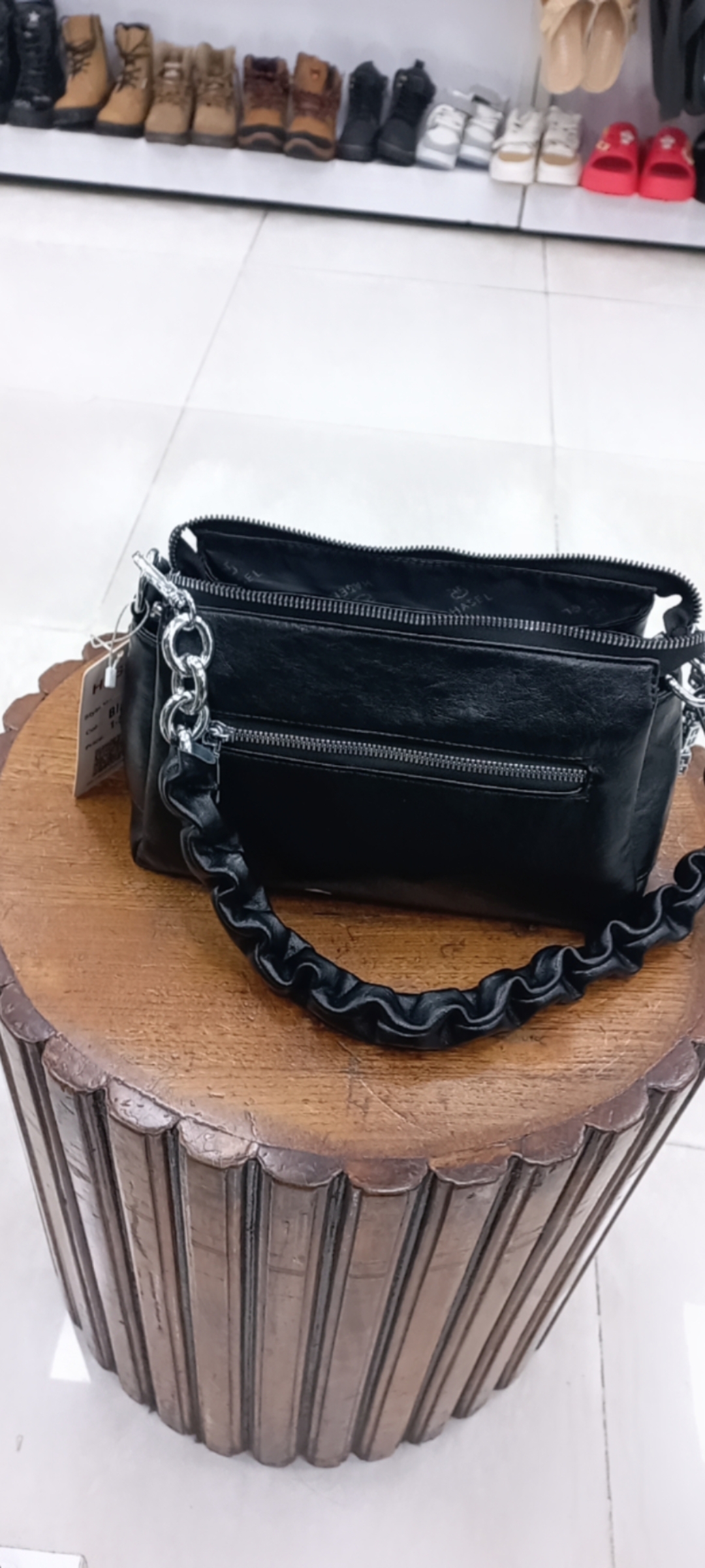 بند زنجیری خاص: این کیف،یک زنجیر پهن و بافت دار مشکی است که با قسمتهای فلزی براق ترکیب شده و استایلی لوکس و چشم نواز به آن می دهد.